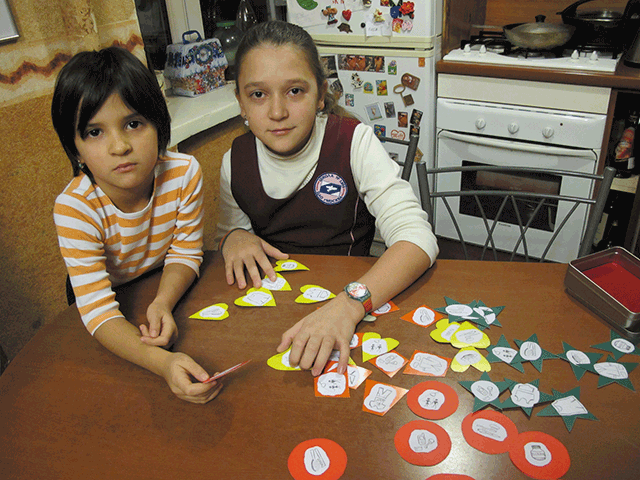 Шаг 5. Мы начали играть! Игра начинается с того, что, вскочив утром с постели, я раскладываю на кухонном столе все наши картинки, коробка-хранилище остается пустой. А потом… выполняя нужные действия практически в любой последовательности, каждый участник игры, сделав что-то из списка, находит свою карточку, обозначающую именно это событие, и кладет ее в коробочку-хранилище. Мы готовы к выходу из дома, когда все наши карточки находятся в коробке под крышкой!