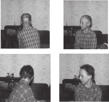 Наш комментарий: интересно, что во многих языках существуют пословицы и поговорки, связывающие волосы и страх. Сравни: «на волосок от гибели», «волосы встали дыбом». Мы также не стали делатъ «маску» на глаза данного мальчика – с тем, чтобы было видно их изменившееся выражение