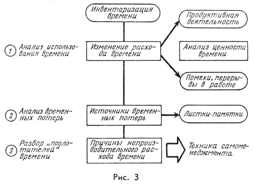 - не известно, какие личности или какие другие факторы стимулируют или ограничивают работоспособность. Только если вы конкретно определите, сколько времени, на что и с кем вы тратите, вы вскроете действительно важные ошибочные моменты своего личного рабочего стиля или самоменеджмента.