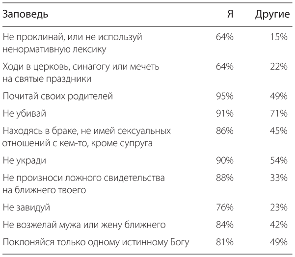 Таблица 2.1. Мы и они: как мы воспринимаем свою и чужую приверженность десяти заповедям