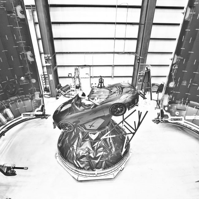 При первом запуске был большой риск аварии, поэтому в SpaceX решили запустить личный Tesla Roadster Маска. Вероятность вывести ее непосредственно на околомарсианскую орбиту Маск назвал крайне малой. Над машиной специалисты SpaceX также потрудились на славу Установили множество камер, не забыли даже посадить манекен в скафандре производства SpaceX.
