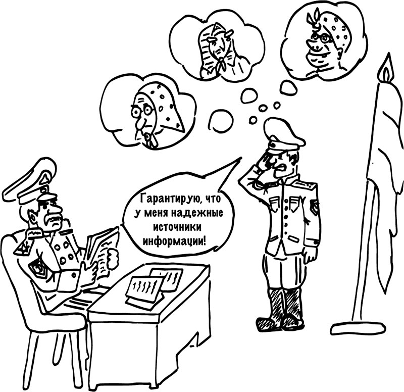 Разведслужбы обычно считают данные верными, если они поступили из «достоверного источника». Однако его достоверность является настолько тонкой материей, что на ней вообще нельзя основываться. Неизвестно, каковы мотивы вашего источника в каждый отдельный момент времени, так что вы не сможете оценить правдивость сведений по этому критерию. Никогда. Те, кто считает истинными любые данные, поступившие из «достоверного источника», очень рискуют.