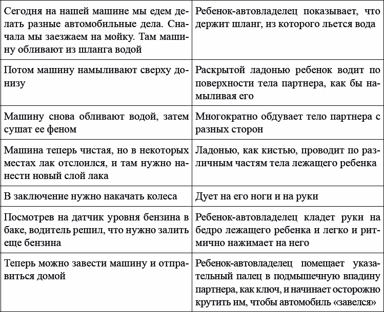 Дети выбирают себе пару, берут коврики, и тот из них, кто будет изображать автомобиль, ложится на спину на коврик. Второй ребенок изображает владельца автомобиля.