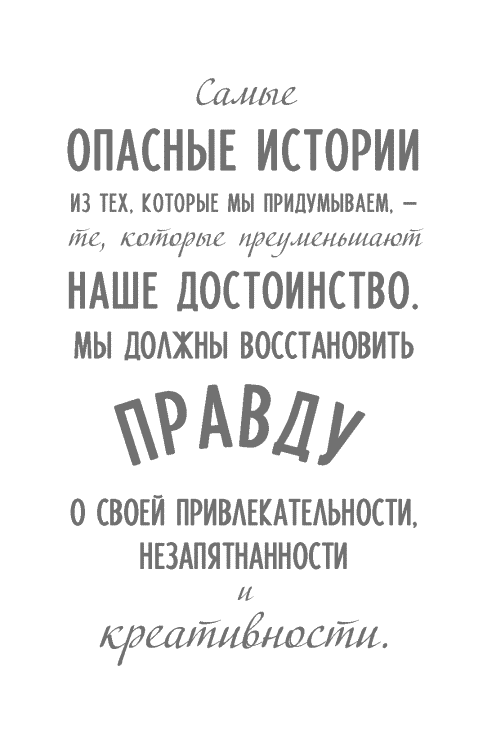 Самые опасные истории из тех, которые мы придумываем, – те, которые преуменьшают наше достоинство. Мы должны восстановить правду о своей привлекательности, незапятнанности и креативности.