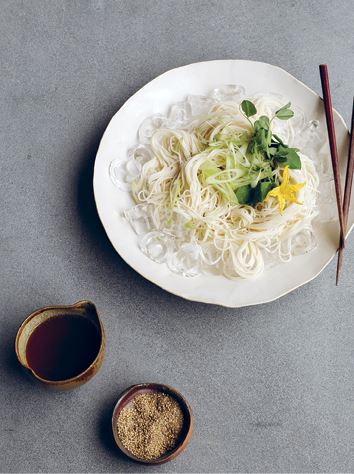 В большой кастрюле кипящей воды приготовьте лапшу сомен как указано на упаковке. Вылейте воду из лапши и положите ее в большую миску, наполненную льдом и водой, и подавайте к столу. Ваша лапша сомен будет центром стола, так что подавайте ее в красивой миске.