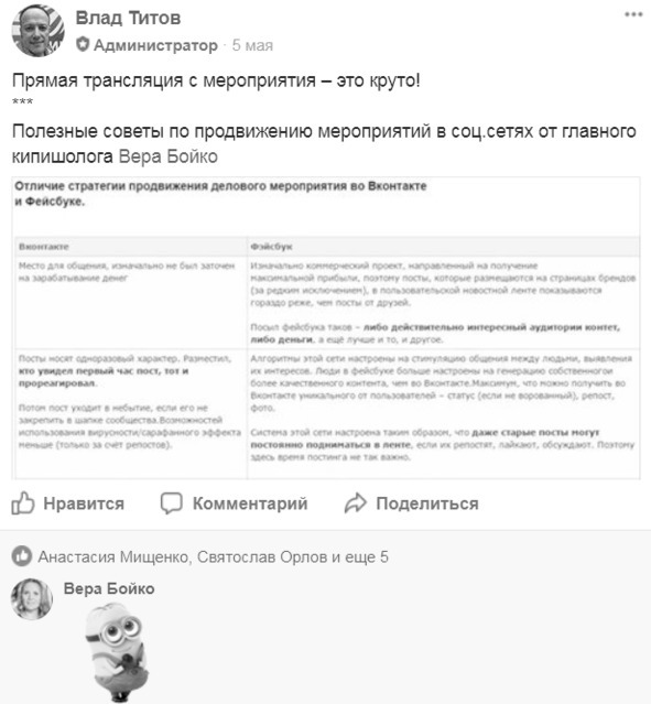 Еще лучше, вовлеките в трансляцию кого-то из лидеров мнений и отвечайте на вопросы участников под постом с трансляцией.