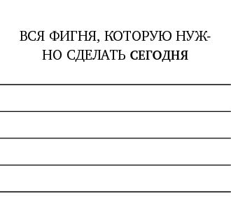 Теперь пора взяться за дело. Вы перечислили все обязательные пункты. Вы наметили время, которое намереваетесь потратить на выполнение каждого задания. Теперь вам нужно открыть свой метафорический бумажник и заплатить флейтисту. Сядьте (или встаньте, или воспарите в воздух – может, вы космонавт?) и СДЕЛАЙТЕ ВСЮ ЭТУ ФИГНЮ. Сила негативного мышления будет продолжать служить вам верой и правдой. Вы уже использовали ее для формулировки целей – вы устали оставаться прикованным к своему столу (или космическому кораблю) на несколько часов после конца рабочего дня. Вам осточертело откладывать свидания, встречи и другие планы, потому что вы всегда «вот-вот закончите работу»… и так три часа подряд. Вы превратили эти негативные чувства в действия. Так держать!