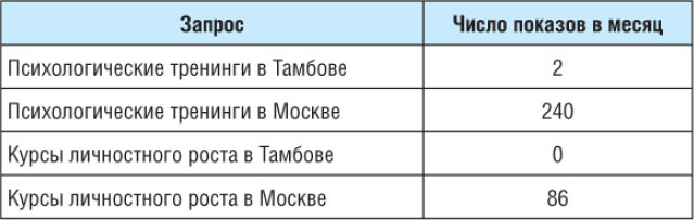 На вопрос, как продвигать тренинги и тренинговый центр, многие отвечают: «При помощи контекстной рекламы». Но контекстная реклама эффективна только в том случае, если тренинговый центр базируется на детских программах и всем, что связано с детьми. В остальных случаях использовать ее не имеет смысла (но все нужно тестировать). С психологическими тренингами все обстоит не так хорошо, как это описывают. Например, при проверке запросов в Яндекс Вордстат были следующие показатели: