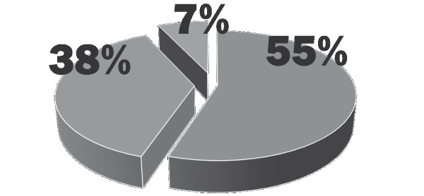 ? 38 % – вербальные средства общения: голос, тембр, дикция, темп, интонация.