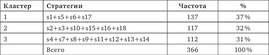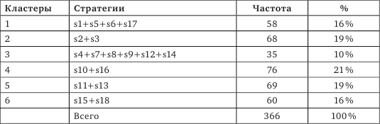 Второй этап проверки данного опросника с точки зрения его конструктной валидности был связан с использованием разных процедур кластерного анализа. Поскольку факторный анализ показал относительную идентичность структуры стратегий в женской и мужской частях выборки, то кластеризация данных выполнялась по выборке в целом.