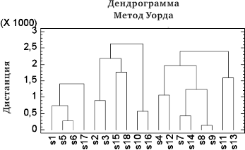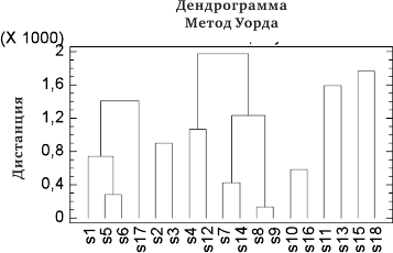 Для сравнения ниже приводятся две дендрограммы: результаты кластеризации данных на три (рисунок 1) и шесть кластеров (рисунок 2).