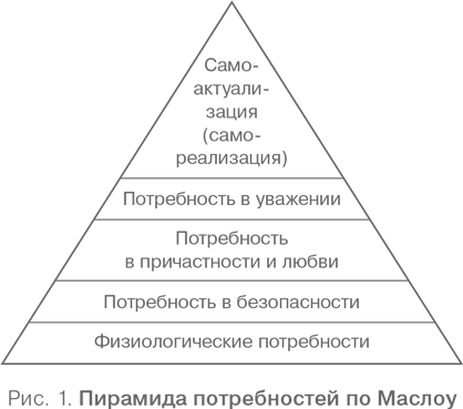Но вернемся к XX веку. Основатель гуманистической психологии Абрахам Маслоу{29} предложил концепцию, очень схожую с аристотелевской. Маслоу считал, что потребности человека образуют определенную иерархию (рис. 1){30}. Если наши потребности удовлетворяются, нам становится проще реализовать свой внутренний потенциал{31}.