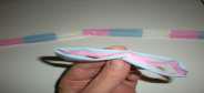 Края полоски складываем внутрь и «заутюживаем» о край стола. Затем складываем пополам и еще раз «заутюживаем». Это будут ноги дракончика или крылышки. Здесь следует включить фантазию. На полоске, которая служит туловищем, пишем: «Имею право быть счастливым». Полоску «заутюживаем» аналогично предыдущим. Берем одну из коротких полос и соединяем концы, перегибаем пополам.