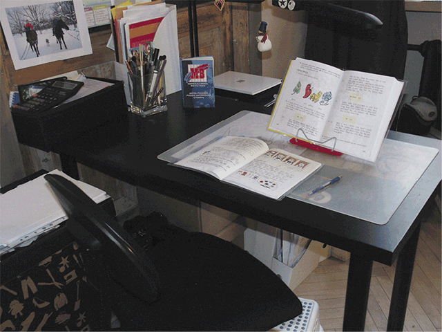 Давайте рассмотрим, как может выглядеть стол ребенка во время занятий. Представим себе, что это обычный, не компьютерный стол.