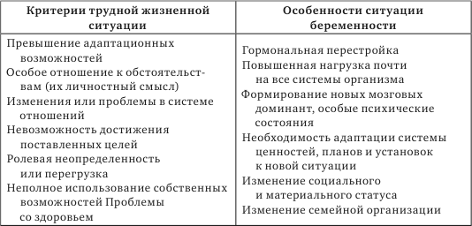 Известно, что беременность представляет собой серьезное испытание и для женщины, и для мужчины, и для семьи в целом. Многоуровневое изменение условий жизни от соматических до социальных во время вынашивания является глобальным стрессом, требующим для совладания с ним значительного и специфического ресурса. В результате проведения исследований в области психологии беременности мы пришли к выводу, что период вынашивания представляет собой естественную модель трудной жизненной ситуации, что позволяет нам применять положения субъектного подхода к анализу поведения женщины в это время (таблица 1).