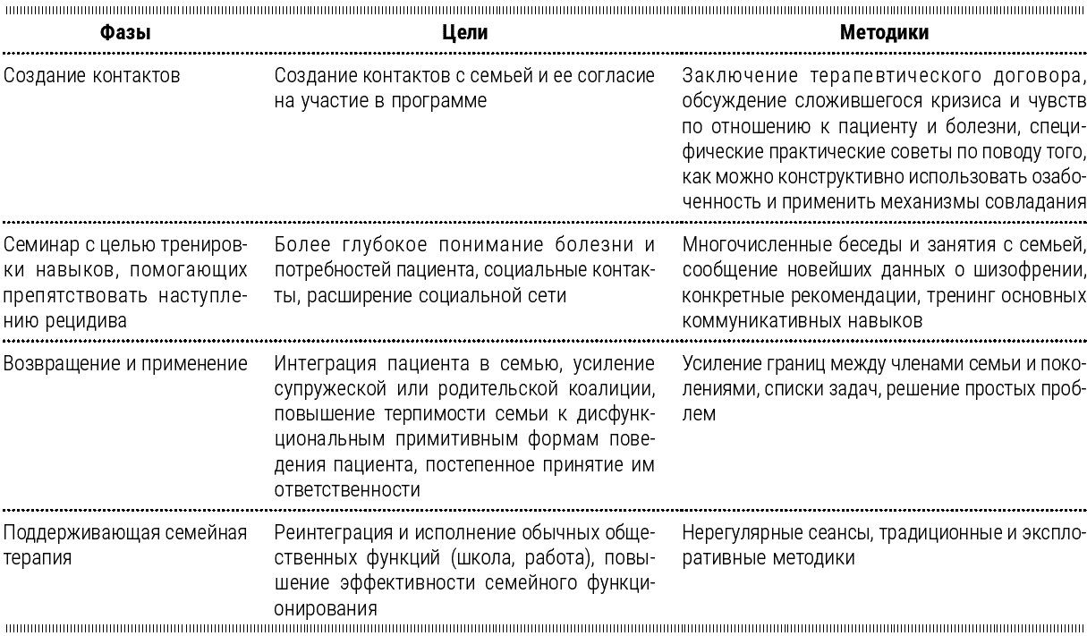Эффективной зарекомендовала себя программа семейной терапии Хогарти и Андерсена (1986), приведенная на предыдущей странице.