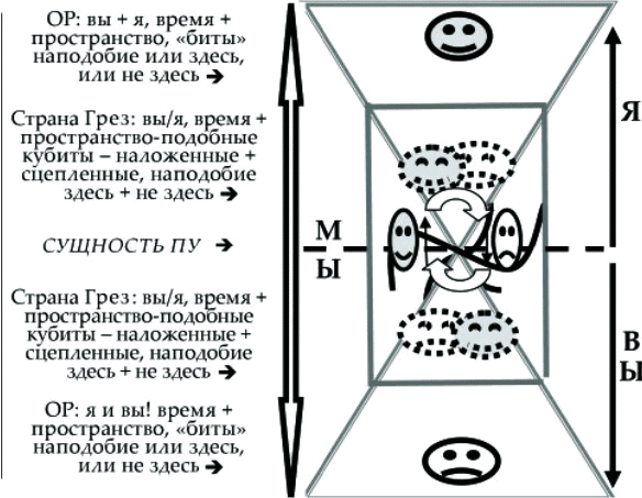 Помните, в главе 6 я говорил о стране грез с точки зрения кубитов. Кубиты относятся к двум перекрывающимся состояниям. Применительно к нашей теме кубиты означают, что мы – один человек, одна система с двумя или более перекрывающимися состояниями, распространяющимися к другим.
