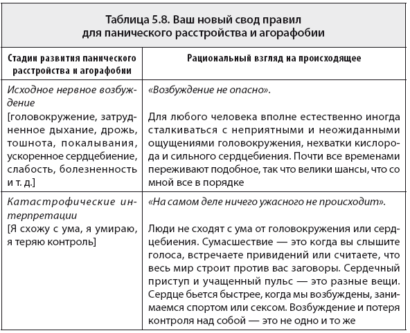 Таблица 5.8. Ваш новый свод правил для панического расстройства и агорафобии