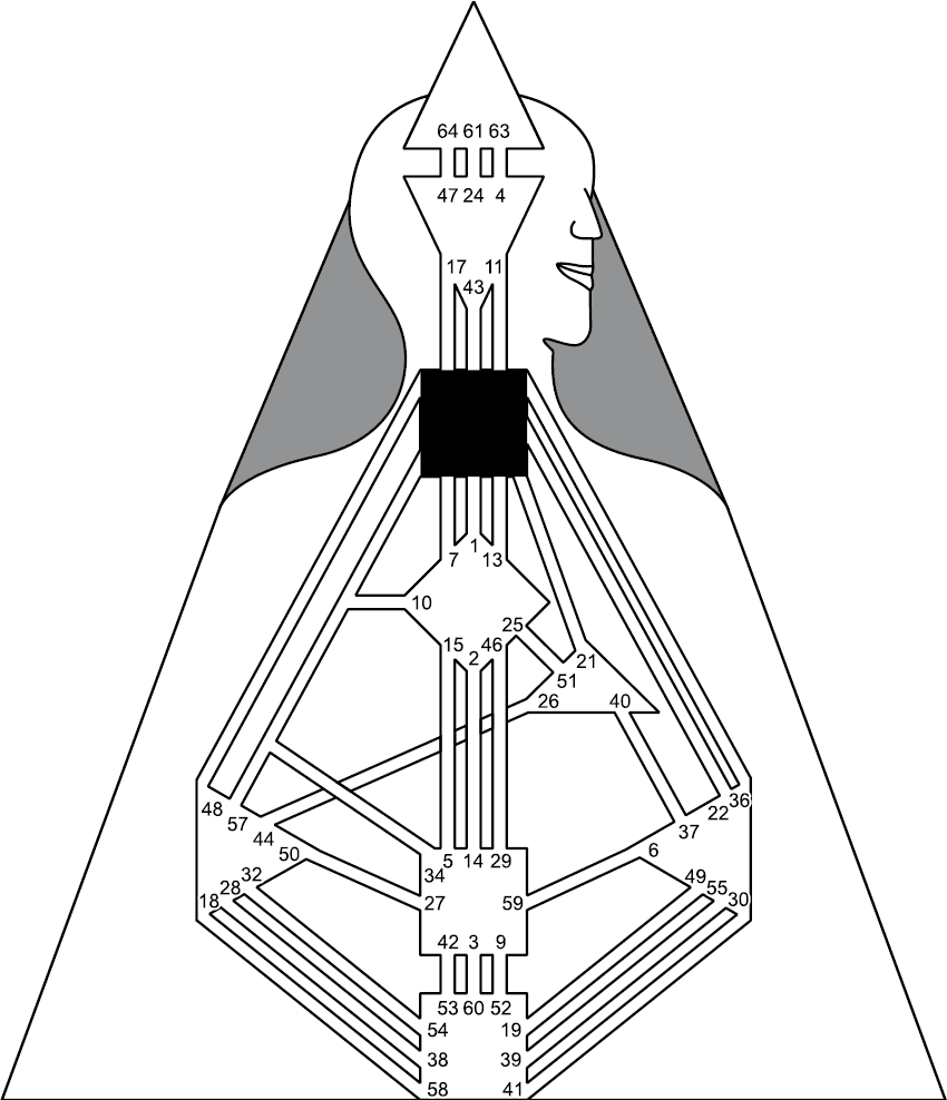 Горло символизируется щитовидной и паращитовидной железами. На Карте жизни Горло представляет собой квадрат, расположенный ниже Короны и Ума (рис. 39). Горло предназначено для общения, равно как и для претворения слов в дело.