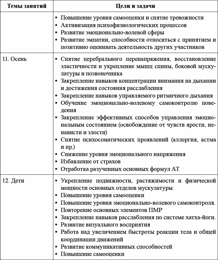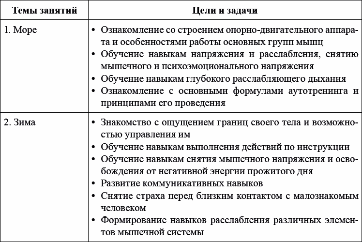 Темы, цели и задачи занятий