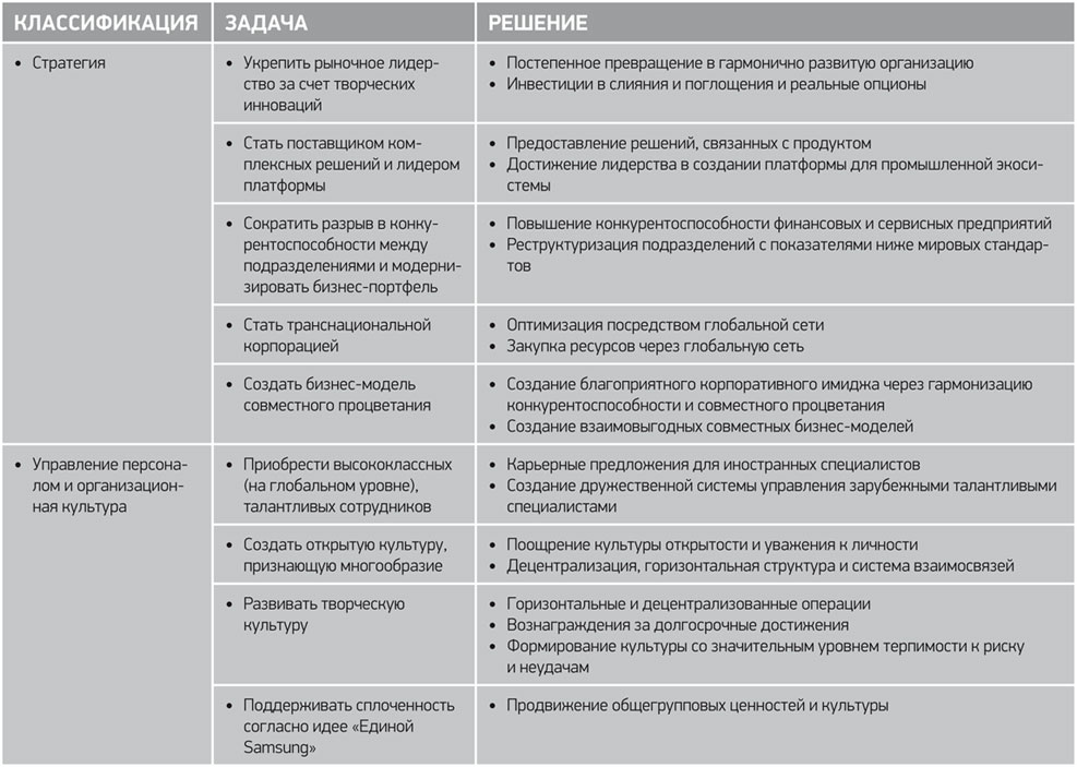 Таблица 9.2. Долгосрочные задачи «Пути Samsung»
