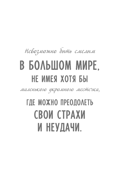 Невозможно быть смелым в большом мире, не имея хотя бы маленького укромного местечка, где можно преодолеть свои страхи и неудачи.