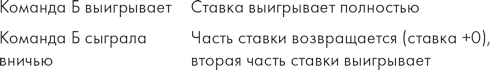 Еще есть вариант, когда у команды Б –0,25 (что равно –0 и –0,5) будет иметь такие последствия для вашей ставки.