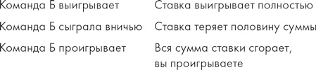 Таким образом, вы выигрываете ровно половину того, что могли бы выиграть, если бы команда Б на самом деле смогла выиграть матч.