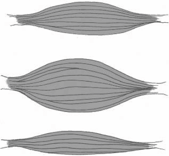 Рис. 1. Внешний вид мышц в состоянии напряжения и расслабления и в обычном состоянии средней нагрузки