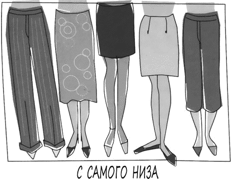 “Давайте-ка начнем все сначала”, – предложила я. Собрав брюки, юбки и шорты различных стилей, мы пробовали до тех пор, пока в конце концов не подобрали идеальный вариант для Сары. К сожалению, после этого нам пришлось полностью поменять все вещи для верха. В тот самый день меня и осенило. Теперь я всегда начинаю с низа, а уж потом подбираю верх».