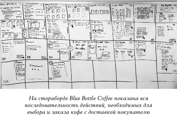 На маркерной доске должны быть отражены все необходимые детали, чтобы в четверг при создании прототипа никто не задавал вопросов типа: «А что дальше?» или «Что происходит в данный момент?». Но при этом постарайтесь не перегружать сториборд деталями. Не нужно стремиться сделать каждый «кадр» идеальным и проработать все до одного мелкие нюансы. Достаточно сказать себе: «Тот, кто будет завтра создавать прототип, сам решит, как это сделать» – и двигаться вперед.
