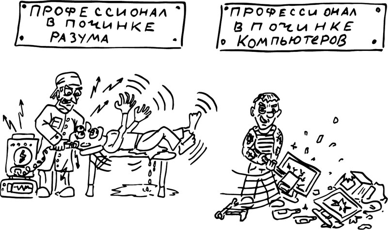 Попросите кого-нибудь дать вам полное, простое и применимое на практике определение слова «профессионал». Увидите – предложат неполное, если вообще смогут что-то сказать. Это будет нечто типа «человек, занимающийся какой-то деятельностью как профессией». Извините, но, к примеру, психиатры занимаются человеческими взаимоотношениями в рамках профессии, но только ни черта в них не смыслят. Вы бы сами точно не хотели оказаться в руках такого «профессионала».