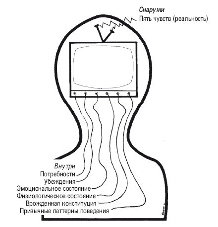 13. Ваше восприятие реальности – это всего лишь одно из сообщений с вашего экрана. Оно окрашено вашими врожденными способностями и характеристиками. На восприятие может влиять ваше физиологическое или эмоциональное состояние в конкретный момент. Ваш взгляд на реальность может быть искажен или нарушен воспоминанием о подобных сценах из прошлого, вашими убеждениями или потребностями.