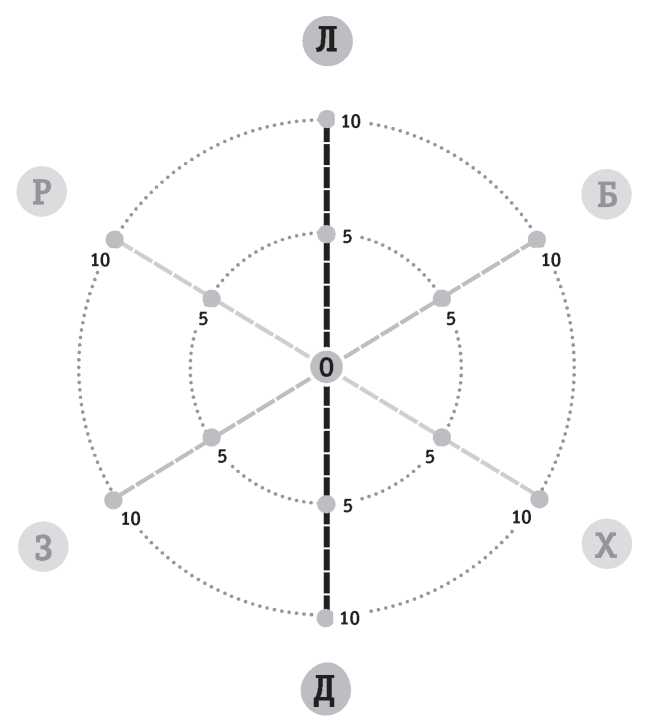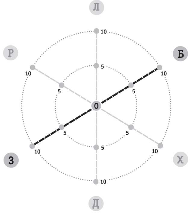 Какие бы баллы вы ни поставили, мы переходим к следующей оси. Может случиться, что спустя какое-то время вам захочется подкорректировать показатель. Это долустимо.