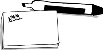 1. В левом верхнем углу листка с клейкой поверхностью напишите «КММ».