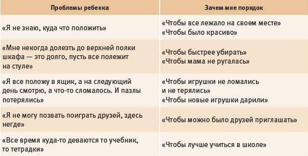 Составьте вместе с ребенком список причин, для чего ему быть более организованным и наводить порядок, что это ему даст. Вы можете взять за основу список проблем ребенка, тогда ему будет проще понять, что должно дать наведение порядка.