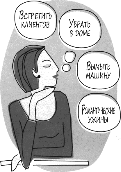 Если вы работаете дома, учтите это при составлении диаграммы, а также укажите, какую одежду вы надеваете в данное время. Если для работы дома вы выбираете деловую одежду, перечислите ее (многие прибегают к такому способу с целью создания рабочей атмосферы). Нам доводилось общаться с людьми, которые вставали рано утром, надевали деловой костюм, отправлялись в офис, расположенный в другом конце дома, садились за стол, снимали пиджак и приступали к работе. Но, как правило, большинство из тех, кто работает дома, плюхаются на кресло перед компьютером в потертых джинсах, растянутых свитерах или пижамах. Если вы поступаете так же, обязательно отметьте это.