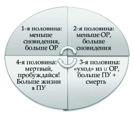 Я говорю о четырех половинах, но они не всегда следуют друг за другом в линейном развертывании. Вспомните наше обсуждение сновидений смерти в главе 6. По моему опыту, сны, в которых вы действительно умираете, редко означают, что вы скоро умрете (хотя вы можете оказаться именно тем человеком, для которого это утверждение не является верным).