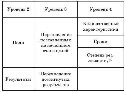 Например, в блок «Цели» вы вносите количественные характеристики цели, которые устанавливались на этапе планирования проекта и являются индикатором для оценки степени реализации цели; сроки, в которые данная цель должна быть достигнута; и, учитывая эти два показателя, оцениваете степень достижения поставленной цели.
