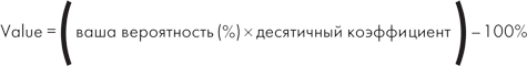 Другими словами, мы ищем завышенные букмекером коэффициенты на «недооцененные» события и самостоятельно рассчитываем вероятность исхода.
