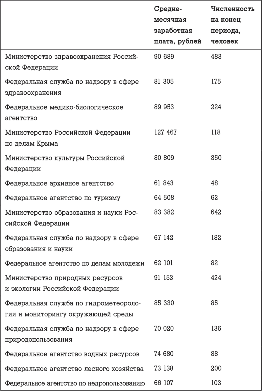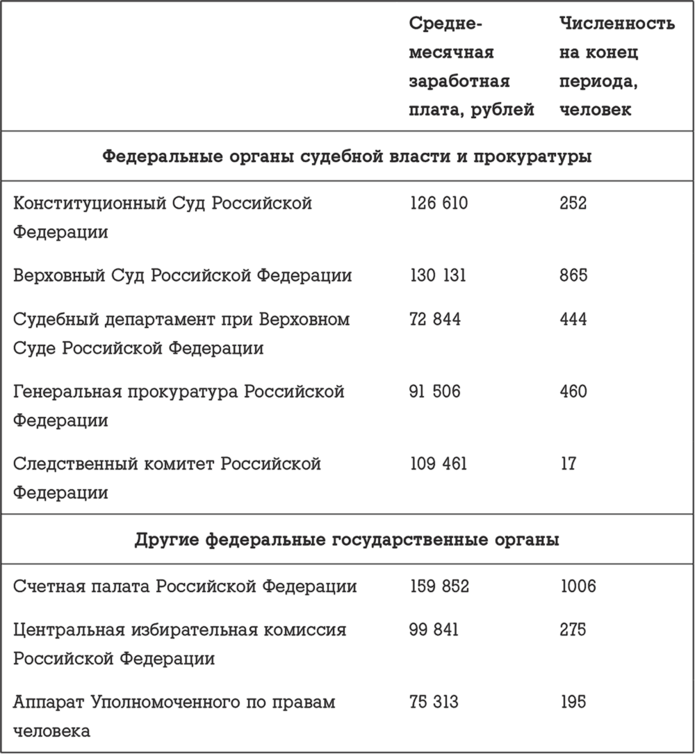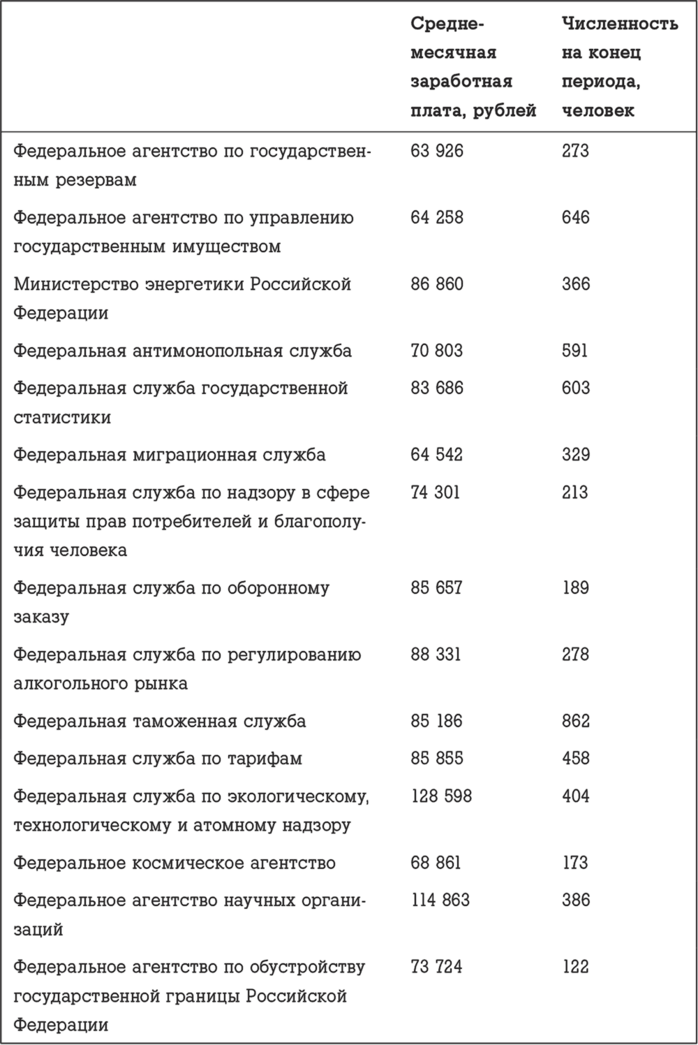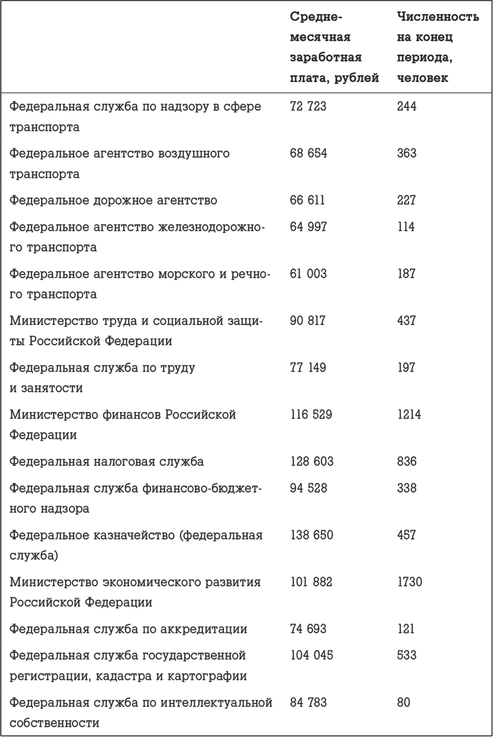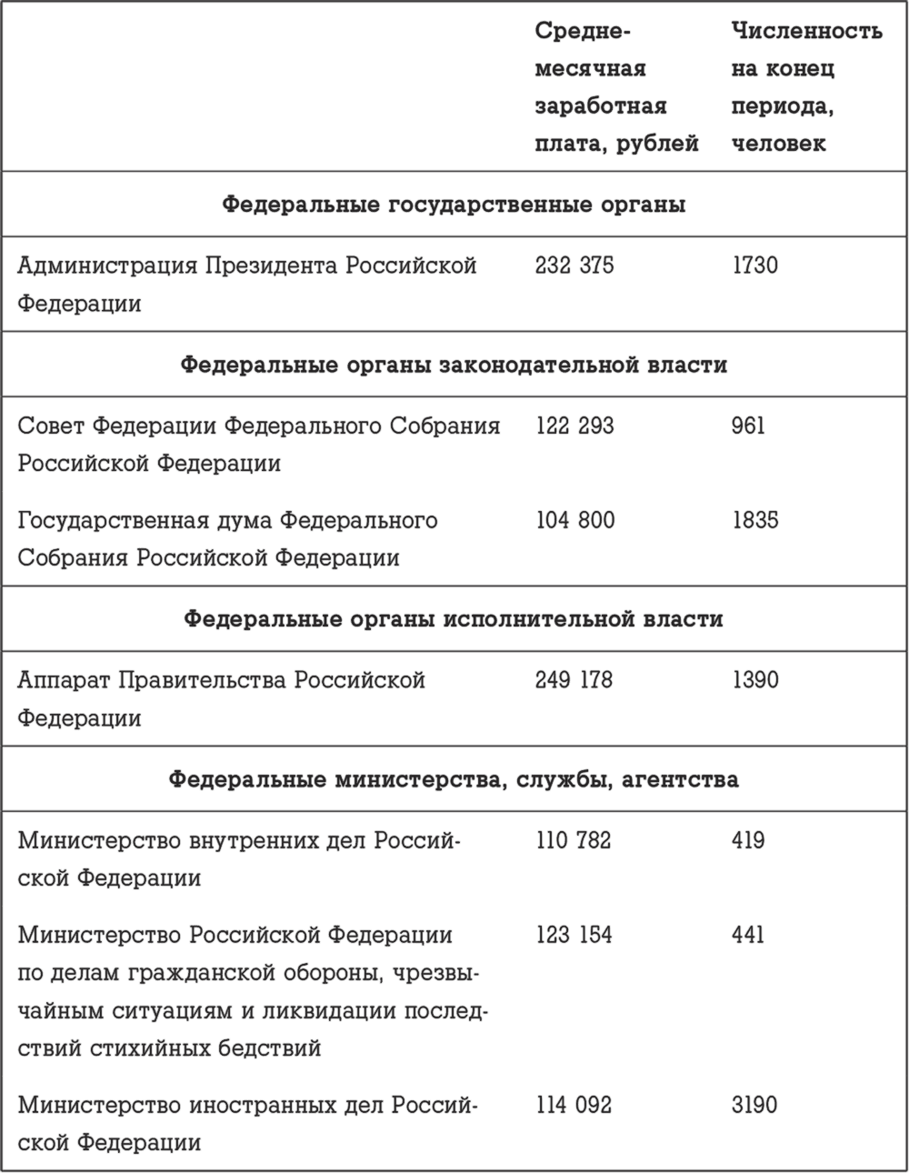 Таблица 3. Среднемесячная заработная плата и численность госслужащих федеральных органов исполнительной власти в 2014 году