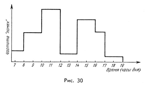 Учитывайте в своем распорядке дня спокойные и «беспокойные» периоды. На нижеследующем графике «дневных помех» показано течение типичного рабочего дня в конторе.