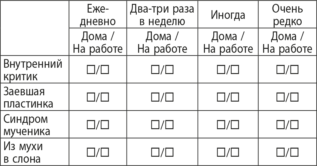 Мы постоянно прокручиваем в голове одни и те же фразы, когда появляются проблемы. Вы, может быть, слушаете заевшую пластинку внутреннего критика и потому беспрерывно критикуете свое поведение. Или же просто по привычке рассказываете всем, как несчастны, какая у вас ужасная работа и что вас не понимают. Вы ничего не предпринимаете для решения проблем.
