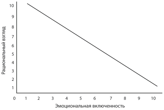 Если кратко, формула С + Р = П кажется простой банальностью (так оно и есть). Тем не менее иногда понимание этой закономерности не удерживает нас от иррациональных поступков. Вы выключаете свет в спальне ребенка и убеждаете его, что нет смысла бояться темноты. Вы мыслите рационально, но не понимаете пятилетнего малыша, который только что посмотрел последний эпизод «Доктора Кто» и теперь опасается инопланетного вторжения. Эмоциональная включенность обуславливает похожие проблемы. Мы становимся менее рассудительными, перестаем мыслить адекватно, в результате страдает здравый смысл.