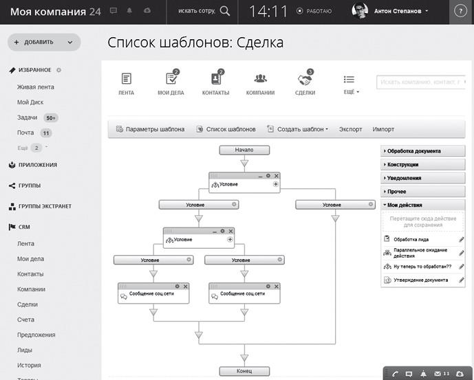Рис. 26. Пример автоматизации бизнес-процесса «сделка» в битрикс24