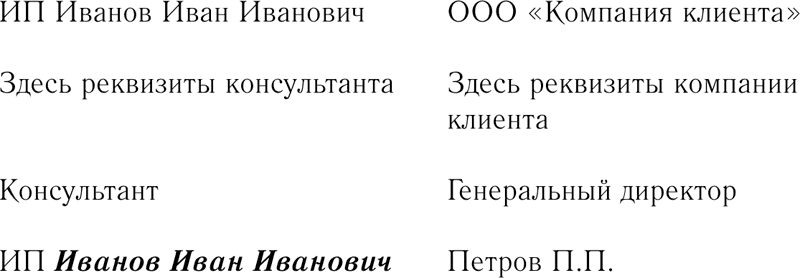Индивидуальный предприниматель Иванов Иван Иванович, именуемый в дальнейшем Консультант, в лице Иванова Ивана Ивановича, действующего на основании Свидетельства о регистрации 77№ 111111111, с одной стороны, и