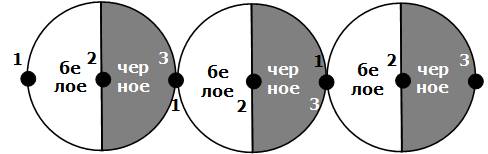 Второй шаг Золотого ряда развития гласит «Два плюс один дает три» – три точки и два слоя. Этот шаг переводит всю систему из статического в динамическое состояние очень простым способом. Полярности начинают объединяться друг с другом в цепочки, чередуя между собой черный и белый цвета и образуя одно измерение в пространстве.