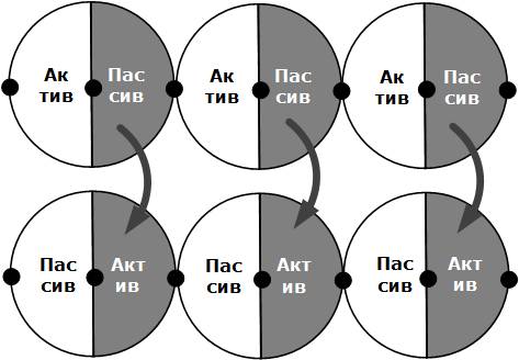 Рис. Двухфазный цикл. «Актив» – делаю, «Пассив» – думаю, что делать дальше.