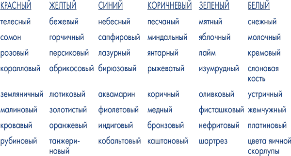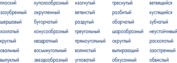Попробуйте соединить форму и движение с цветом – чтобы получить новый образ. Летящий оборчатый коричневый. Крадущийся на цыпочках округлый лавандовый. Несущийся обкусанный зеленый. Качающийся сутулый малиновый. Облегающий заостренный коричный… Сколько разных сочетаний вы можете составить?