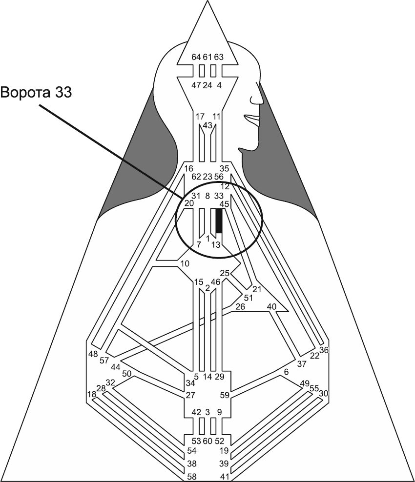 Опасность этой энергии в том, что в своем низшем проявлении ее обладатель панически боится повторения прошлого негативного опыта. Нередко это может стать серьезным препятствием для дальнейшего развития, особенно если решение «не совершать прежних ошибок» принято не вовремя. Прошлое требует очищения временем, прежде чем станет понятно, достойно ли оно остаться в памяти. Лишь в одиночестве обладатель Ворот 33 может понять, чем стоит поделиться с окружающими, а что, напротив, следует как можно скорее забыть.